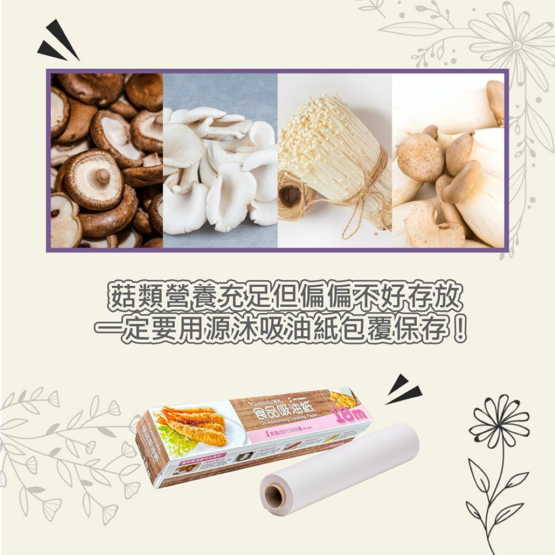 -菇類(杏鮑菇、香菇),用吸油紙包覆、可多保鮮7-10天